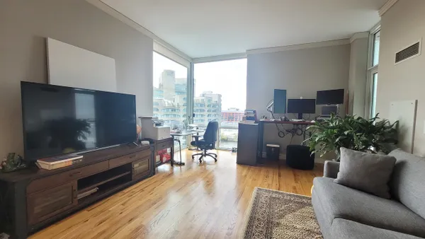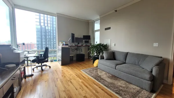 Bright and sunny, South and West facing 1/1 corner unit in beautiful Printer's Corner in South Loop. Hardwood floors, maple cabinetry, granite counters, balcony and SS appliances. In-unit full size laundry! Bike room and storage unit. 1 deeded parking space for additional $25,000. No rental cap, low HOA, $406 including $25 internet charge and one parking spot. HOA include everything except the electricity. Great convenient Printer's Row/South Loop location! Close to all public transportation.